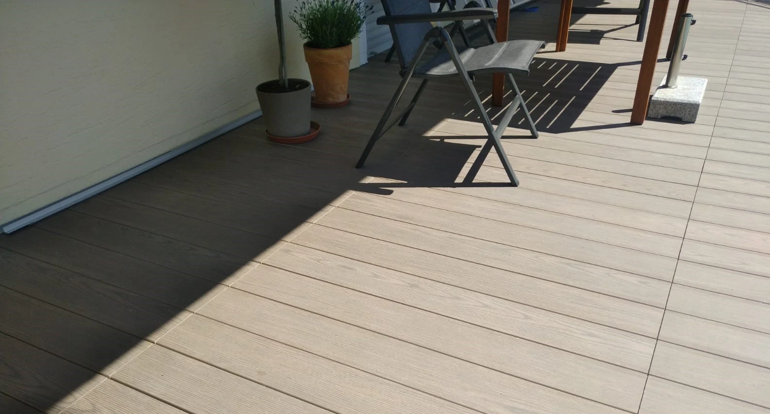 Dank der speziellen Materialeigenschaft erwärmt sich die Oberfläche durch Sonneneinstrahlung nicht stärker als Keramikplatten oder Aluminium-Barfußdielen. So können Sie bereits im frühen Frühjahr die angenehme Wärme der Dielen auf Ihrem Balkon oder Ihrer Terrasse genießen.
