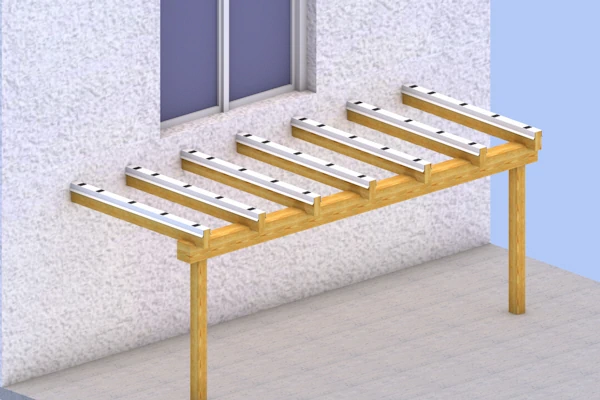 Verlegen der Konterlager auf der Holzkonstruktion (Balkon von oben mit zuvor abgedichtetem Blech)