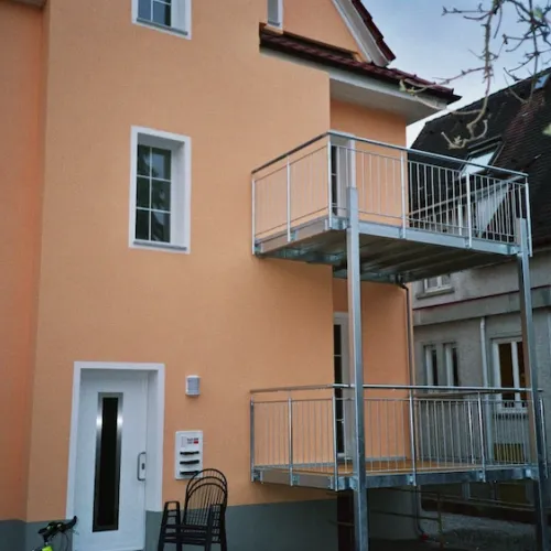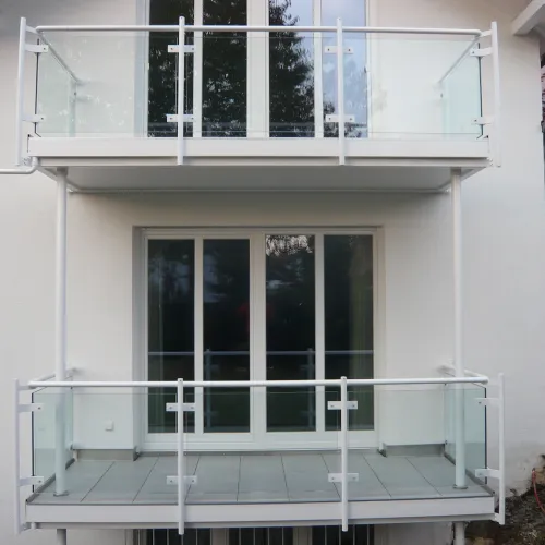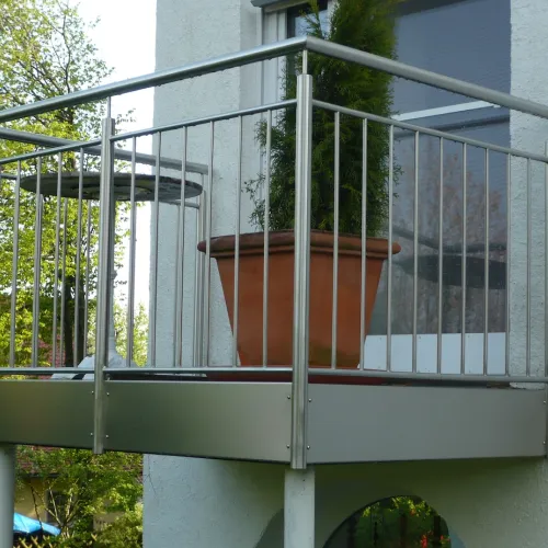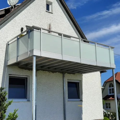 Unsere Anbaubalkone mit Stützen fertigen wir aus langlebigen Materialien wie Stahl, Aluminium oder Edelstahl. So lässt sich der Balkon an die Optik Ihres Hauses anpassen.