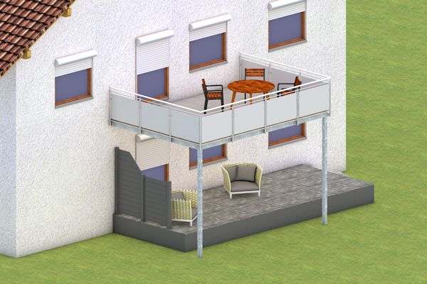 Ob ein oder mehrere Geschosse, ob mit Treppe, Geländer, Sichtschutz oder Überdachung – der Vorstellbalkon ist flexibel planbar.