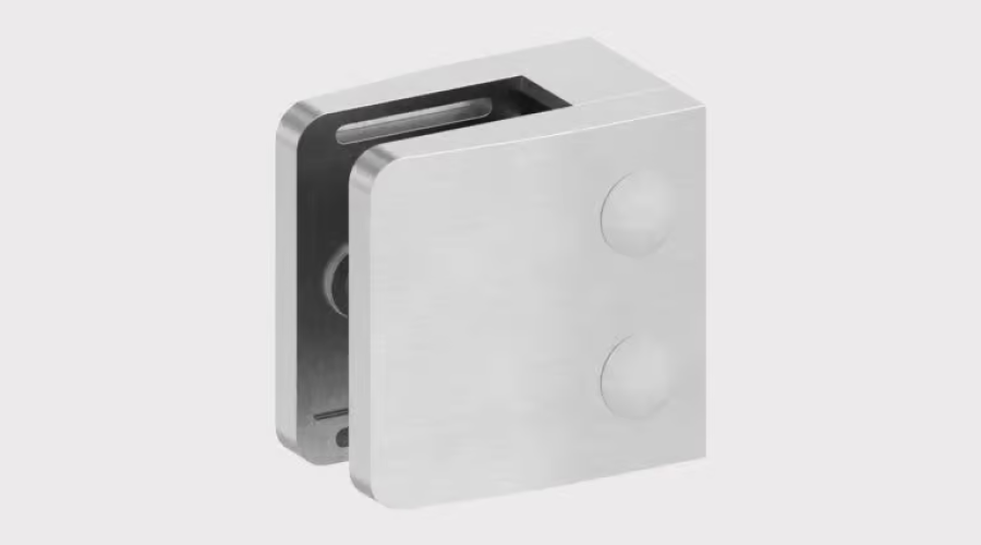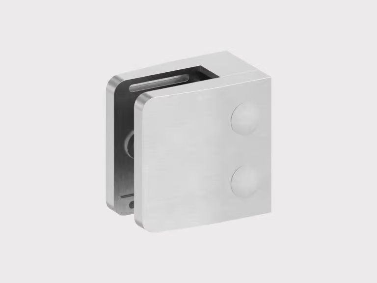 Die Firma Geißler setzt Klemmhalter ein mit Sicherungsplatte im Glashalter. Dies ermöglicht eine zusätzliche Stabilisierung der Glasscheibe und schützt diese vor abrutschen.