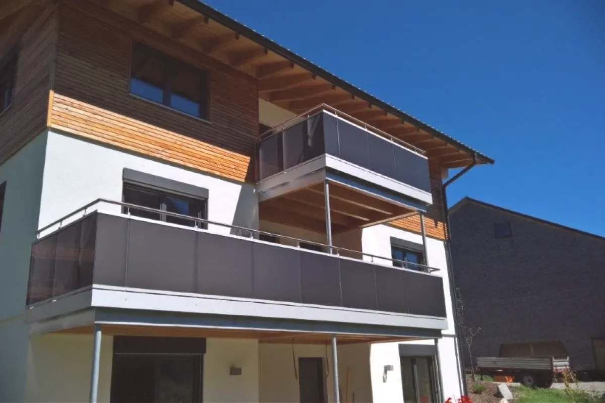 VSG aus ESG (Verbundsicherheitsglas aus Einscheibensicherheitsglas) besteht aus zwei oder mehreren ESG-Glasscheiben, die mit Lamex-Folien miteinander verpresst werden. Dieses thermisch vorgespanntes Glas bietet eine hohe Widerstandsfähigkeit gegenüber Temperaturschwankungen, was besonders vorteilhaft für Balkon- und Fassadenverkleidungen ist. ESG bietet zusätzlich erhöhte Sicherheit und Stabilität. Bei Farbbegnungen wie Rot oder Anthrazit können jedoch erhöhte Pigmentierungen auftreten, die auf der Sonnenseite des Balkons zu intensiven Hitzeeinwirkungen auf die Glasoberflächen führen können.