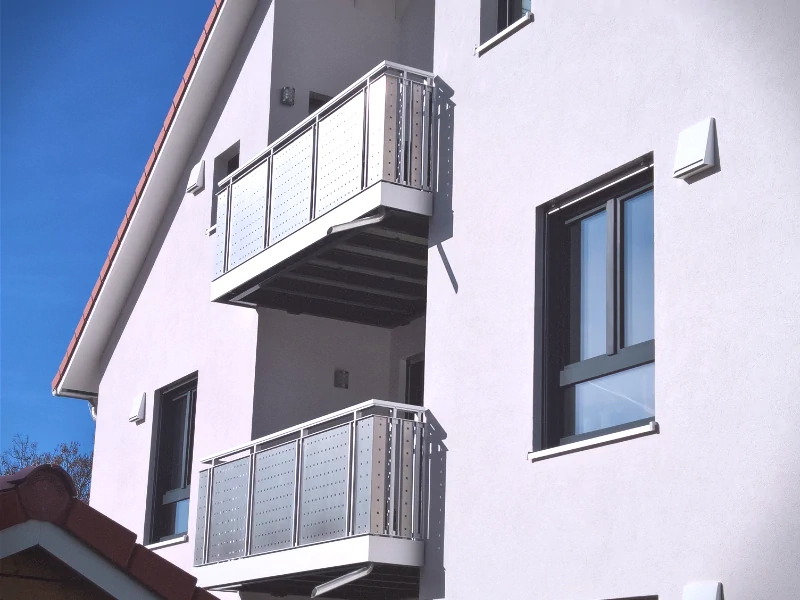 Balkon Geißler bietet Ihnen individuell gestaltbare Aluminium- und Edelstahlgeländer für Mehrfamilienhäuser. Unsere werkseigene Fertigung von Blechelementen ermöglicht nahezu jede Designvorstellung, von modernen Lochmustern bis hin zu eleganten Blumenmotiven.