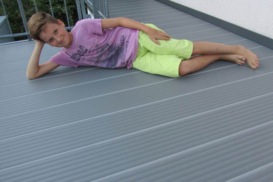 Dank der witterungsbeständigen Pulverbeschichtung sind die Dielen besonders langlebig und pflegeleicht. Ob in modernen RAL-Farben oder in natürlicher Holzoptik – für jeden Balkonboden gibt es das passende Design. Die rutschhemmende, glatte Oberfläche ohne Rillen sorgt für Sicherheit und ein angenehmes Barfußgefühl.