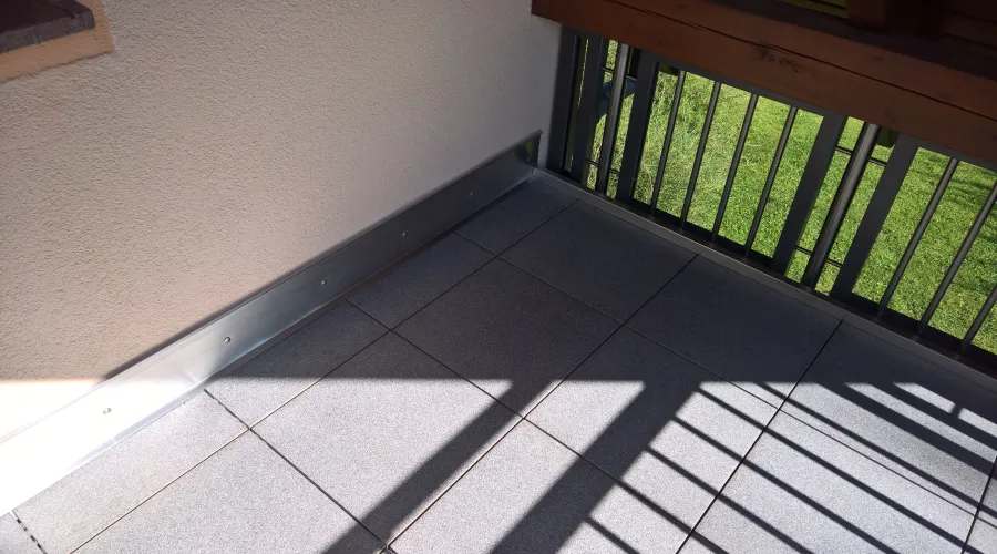 Balkon Geißler fertigt individuell Wandanschlüsse aus verschiedenen Blech Werkstoffen bzw. kantet Bleche zu Wasserrinnen an der Stirnseite der Balkone. Somit kann das Regenwasser aufgefangen werden oder über einen Wasserspeier abtropfen.