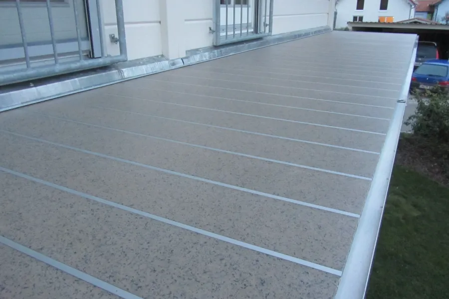 Um die Selbstreinigung auf Flächen zu aktivieren, Dichtbahn oder Bodenbeläge, erstellen wir ein Gefälle von 1,5% / 2% um Staunässe und Schmutzanhaftung zu verhindern. Auf Wunsch auch die kostengünstige Alternative ohne Gefälle. Du erhältst eine wesentlich länge Balkonabdichtung wie bei einem Flachdachaufbau am Balkon.